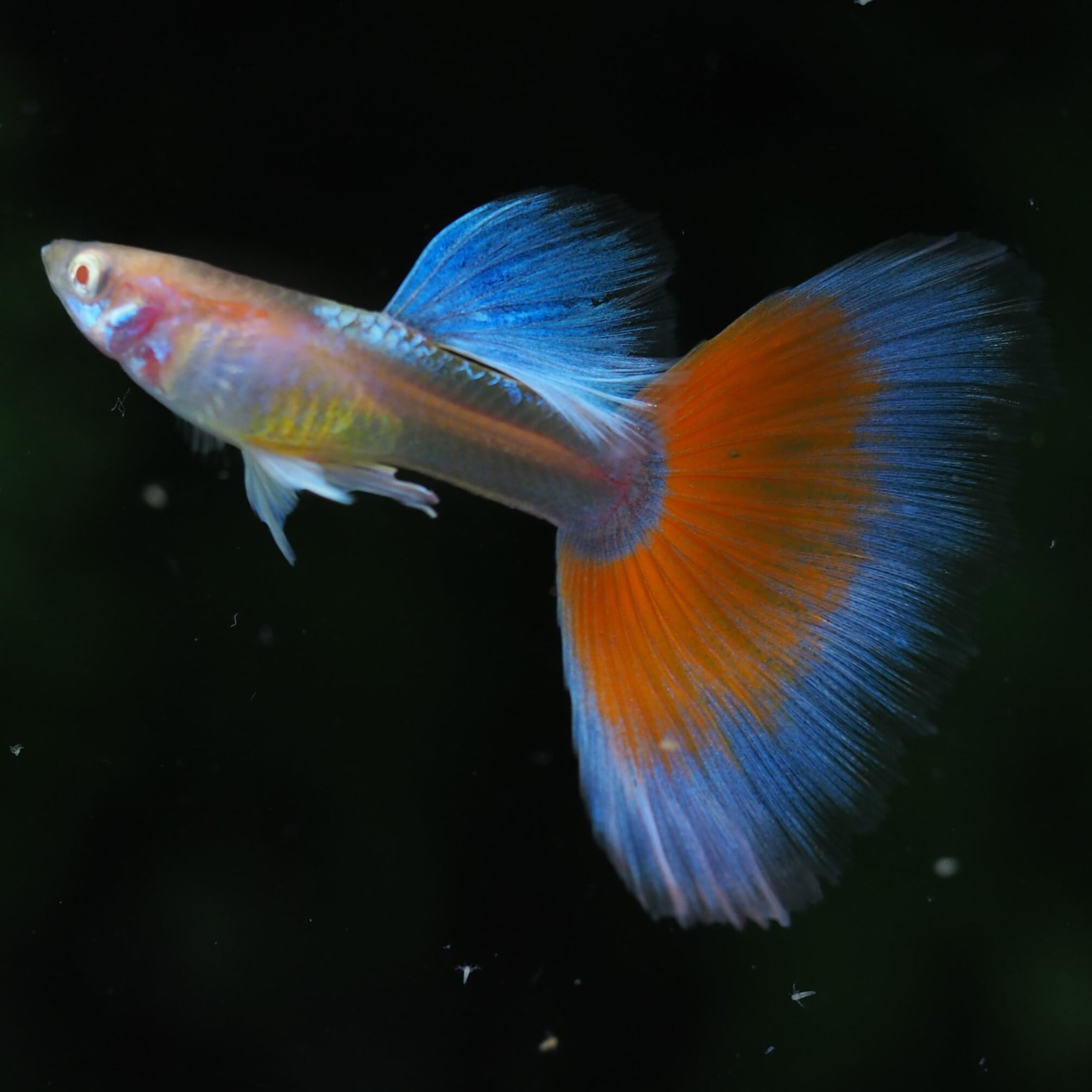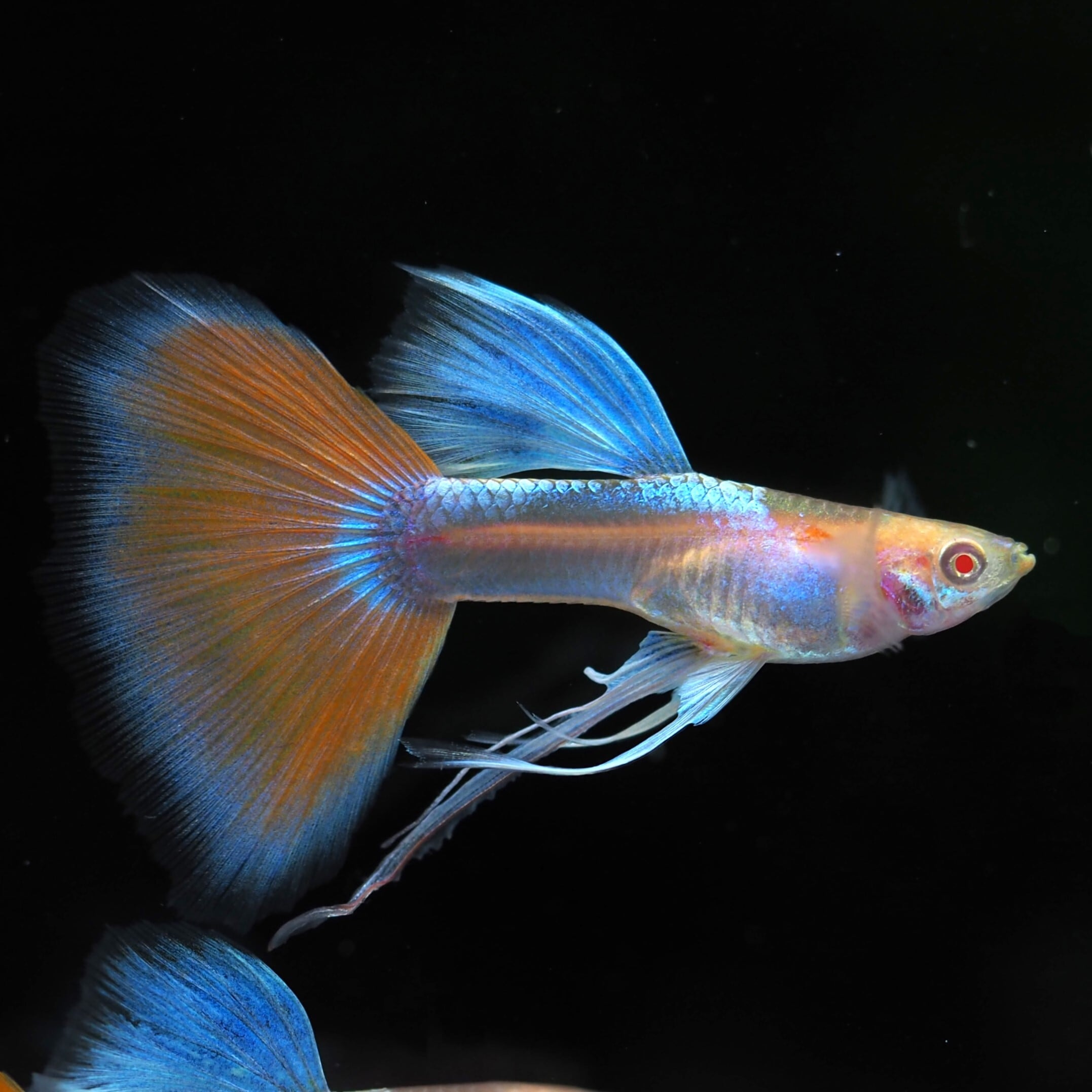 アクアマリンと呼ばれるボディの青い発色と、オレンジ調のレッドテールが特徴の品種です。