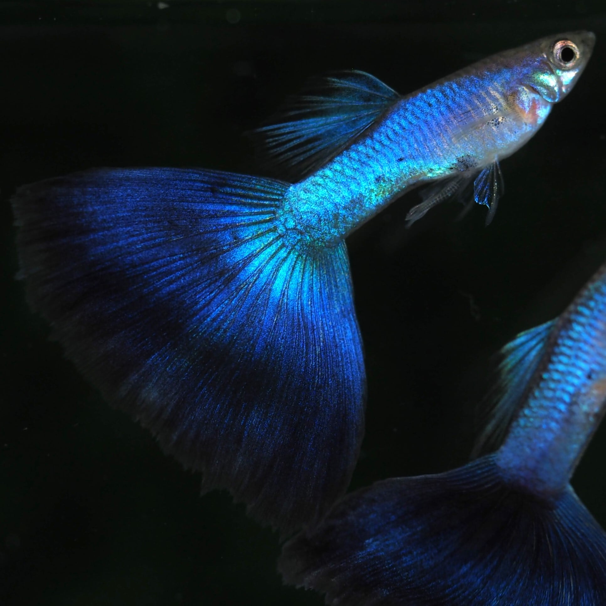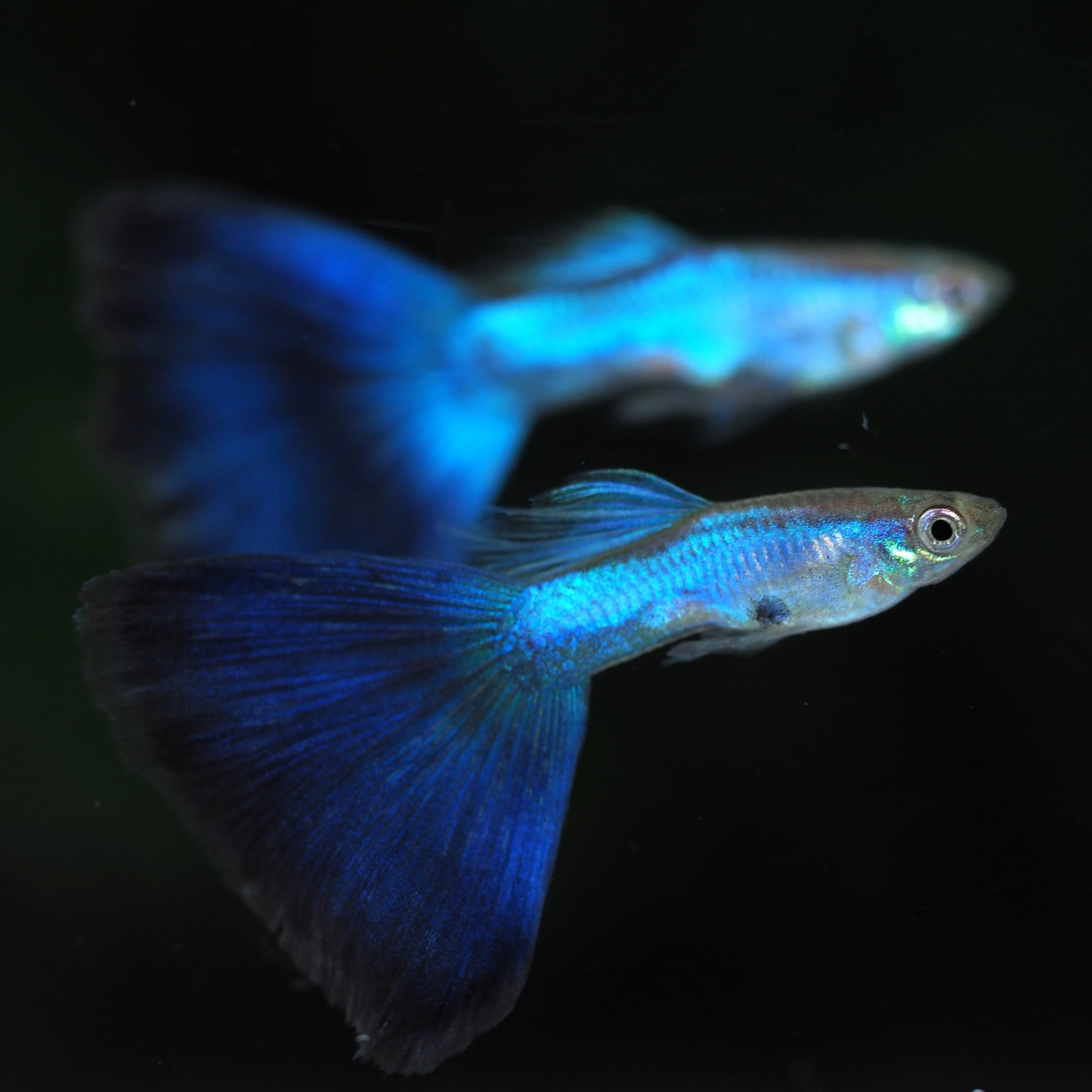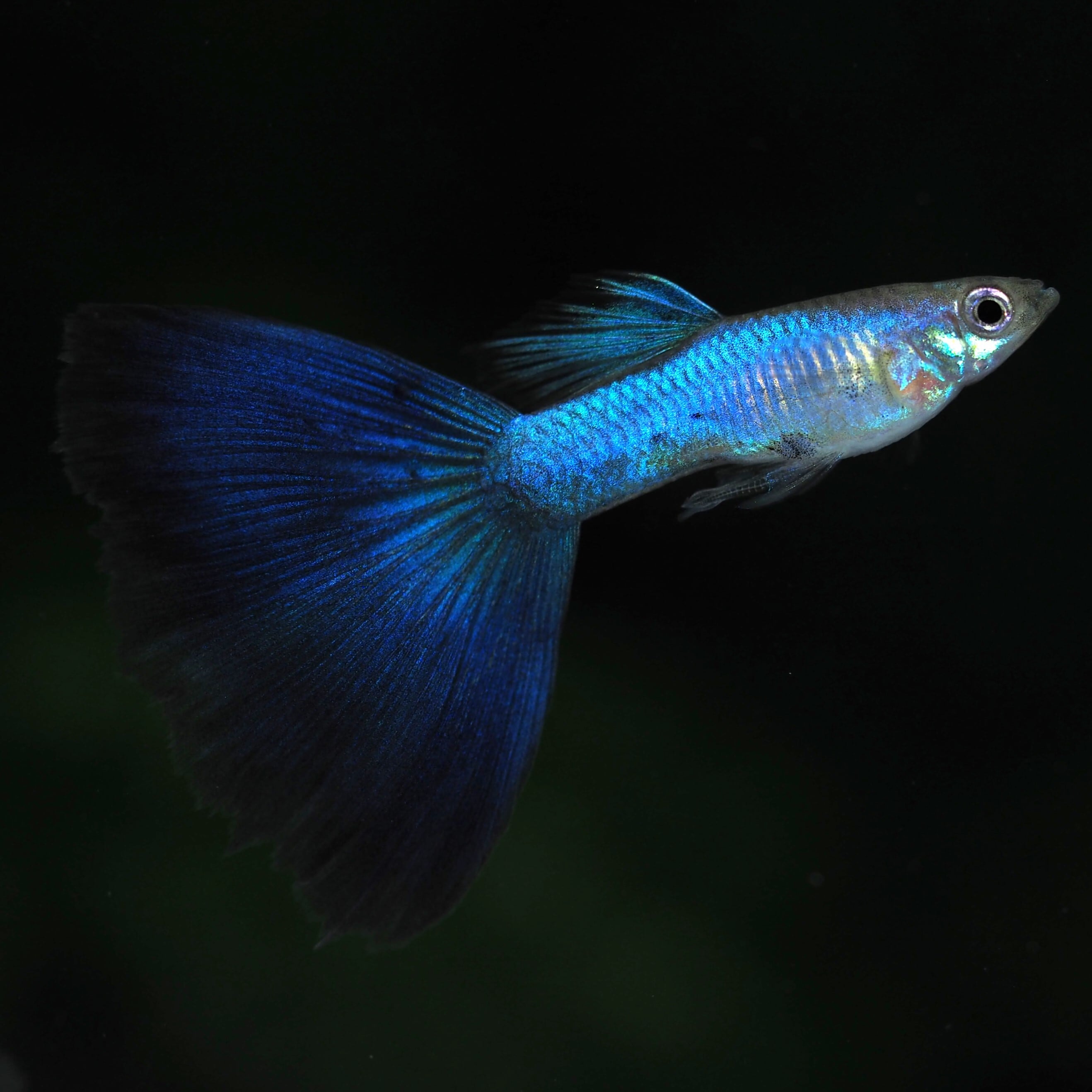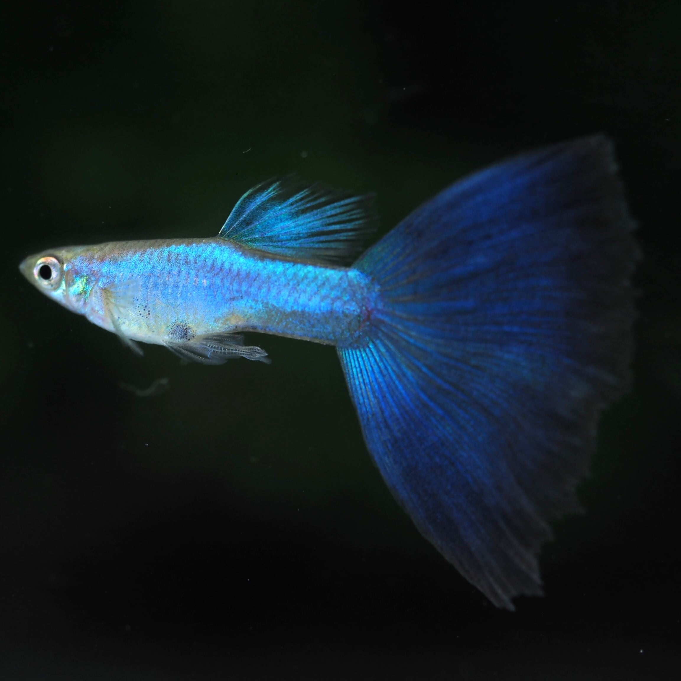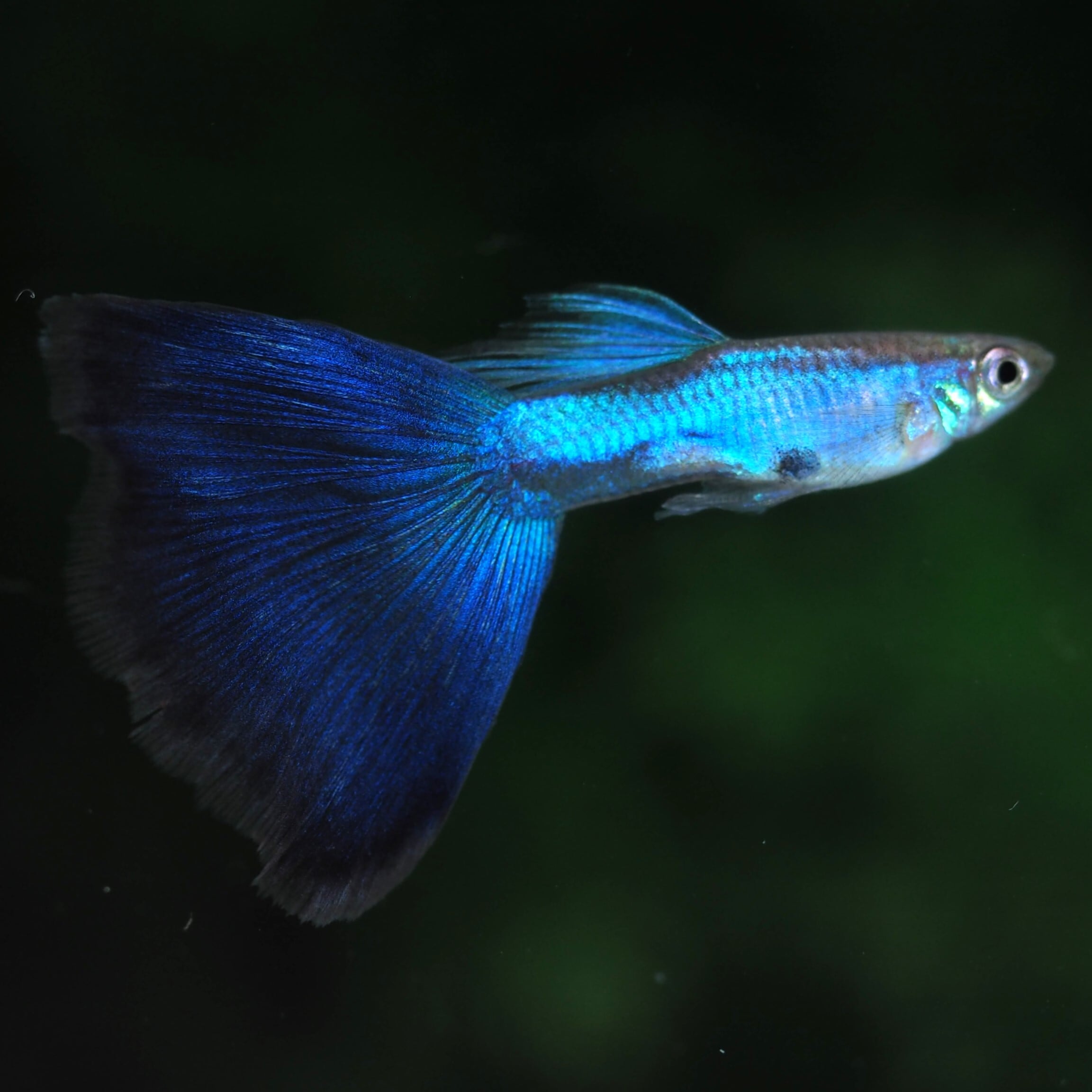 ラズリーと呼ばれるボディの煌めく青い発色とダークブルーの尾びれ、全身ブルーが特徴の品種です。